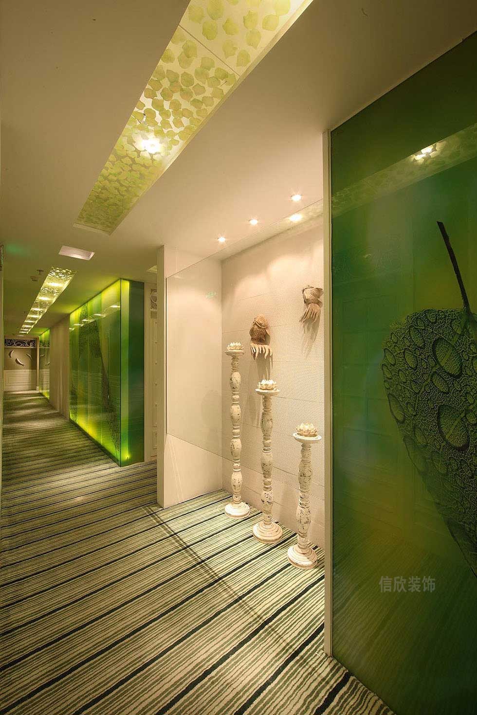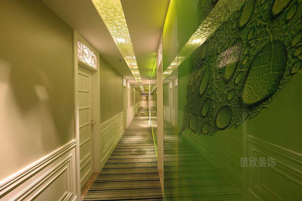 走廊的整體設(shè)計,采用通透式一眼到底方式,讓整體狹小的空間,視覺效果上更寬敞,更開闊,綠色的燈膜不僅延伸性強(qiáng),而且把整個空間變成優(yōu)雅的綠意,讓人心曠神怡。