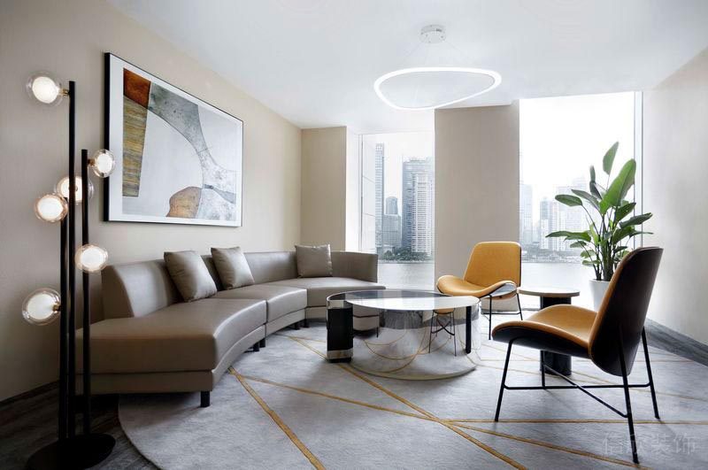本案位于深圳市是一所現(xiàn)代輕奢風(fēng)的外貿(mào)公司辦公室裝修設(shè)計(jì)案例,輕奢風(fēng)辦公室裝修設(shè)計(jì)時(shí)尚線條匯聚您的心靈,在色系的運(yùn)用上,大部的色調(diào)以淺色作為主色調(diào),稍微用亮色進(jìn)行點(diǎn)綴。從視覺(jué)的角度上來(lái)說(shuō),淺色與深色相比,是一種較為舒適、柔和的色調(diào),再加上少許的亮色點(diǎn)綴,會(huì)使整個(gè)空間既有和諧統(tǒng)一的感覺(jué),又突出了視覺(jué)層次感,給空間增添許多生氣和溫度。輕奢風(fēng)辦公室裝修設(shè)計(jì)時(shí)尚線條匯聚您的心靈,色彩是定位風(fēng)格的重要因素,想要打造出輕奢的感覺(jué),必然要經(jīng)過(guò)巧妙的色彩搭配,才能顯現(xiàn)出豐富的魅力。 在色彩選擇上,輕奢風(fēng)格一般會(huì)選用象牙白、奶咖色、碳灰或米杏色等,一些帶有高級(jí)質(zhì)感的中性色調(diào),通過(guò)巧妙混搭讓空間氣質(zhì)得以提升,盡顯現(xiàn)代時(shí)尚優(yōu)雅的風(fēng)范。