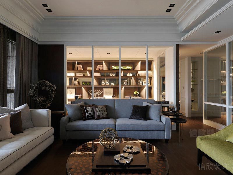 本案位于深圳市南山區(qū)匯城名苑是一個現(xiàn)代美式風(fēng)二手房改造裝修案例,美式風(fēng)格的客廳,設(shè)計感簡潔明快,通常使用大量的石材和木飾面裝飾;美國人喜歡有歷史感的東西,這不僅反映在軟裝擺件上對仿古藝術(shù)品的喜愛,同時也反映在裝修上對各種仿古墻地磚、石材的偏愛和對各種仿舊工藝的追求上。寬敞而富有歷史氣息的。