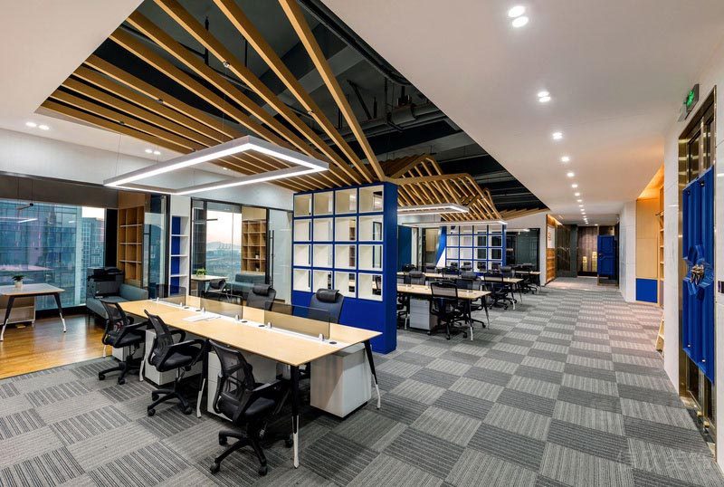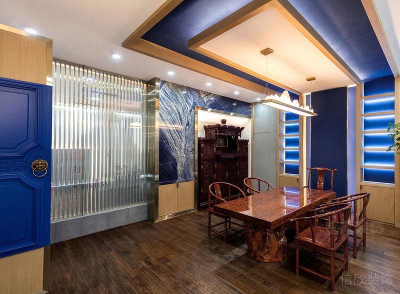 寶石藍色調(diào)的藝術(shù)雕花門板將過去和現(xiàn)在銜接了起來,表現(xiàn)出公司的企業(yè)底蘊跟時代發(fā)展性,讓人在門外也能感受到公司的特性。