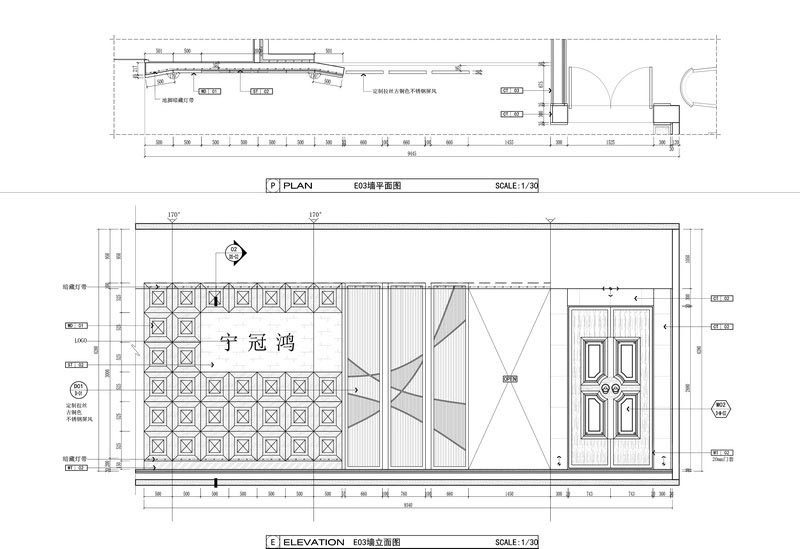 深圳南山現(xiàn)代中式風格辦公室—形象墻立面圖